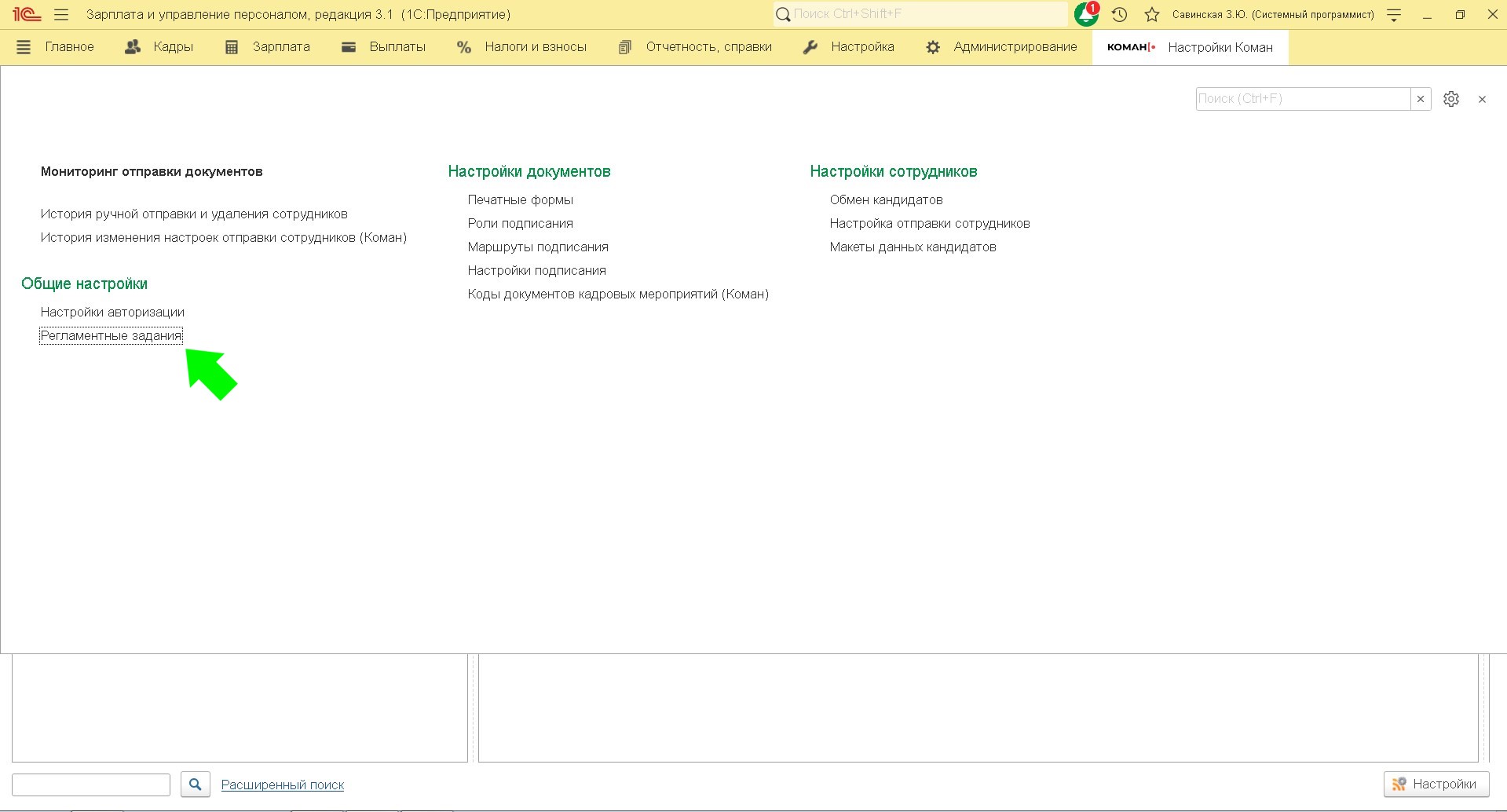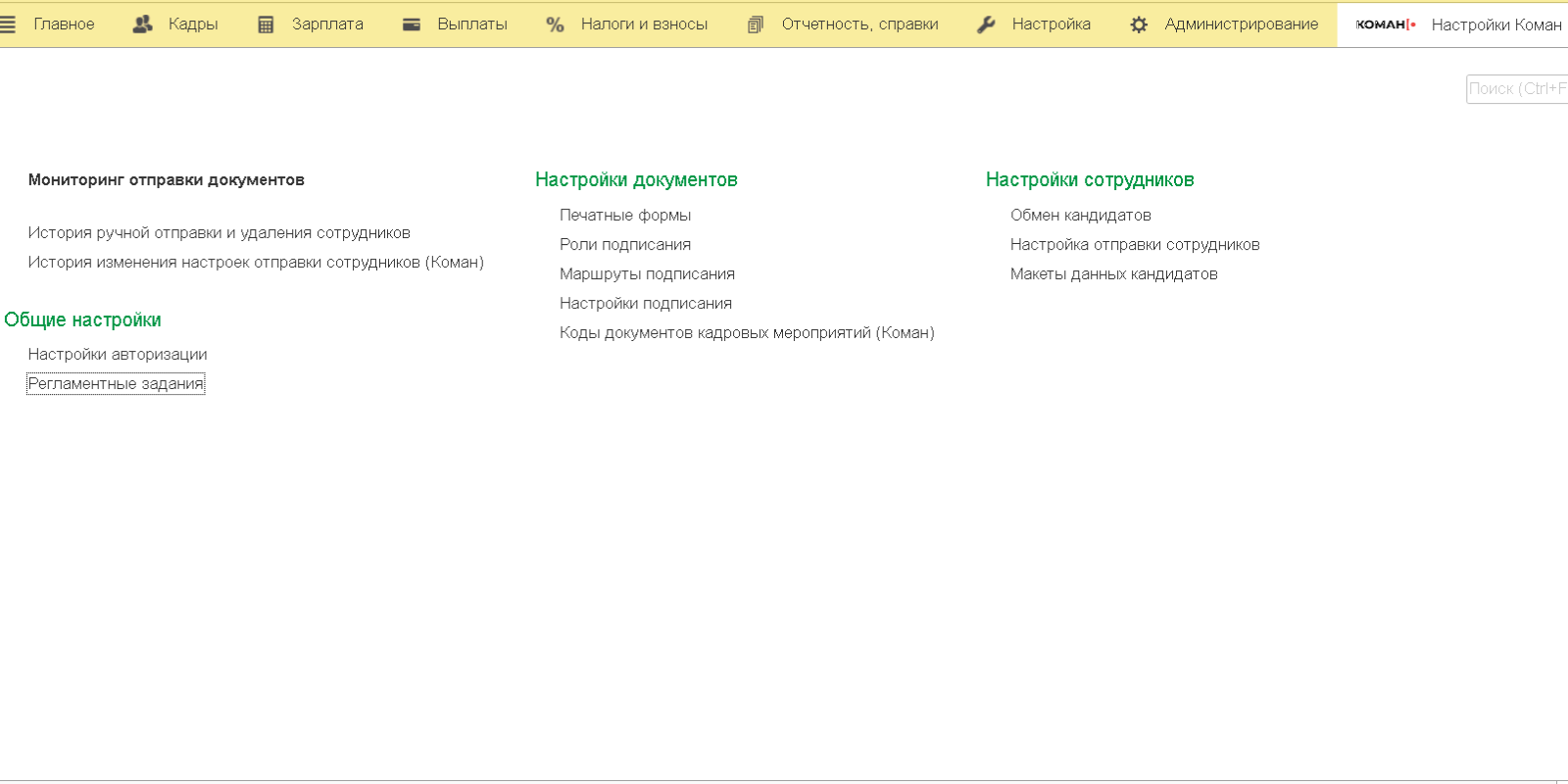 Регламентное задание предназначено для обновления статусов отправленных из 1с в Коман сотрудников. Статус сотрудников в Коман отображается в "Настройке отправки сотрудников ".