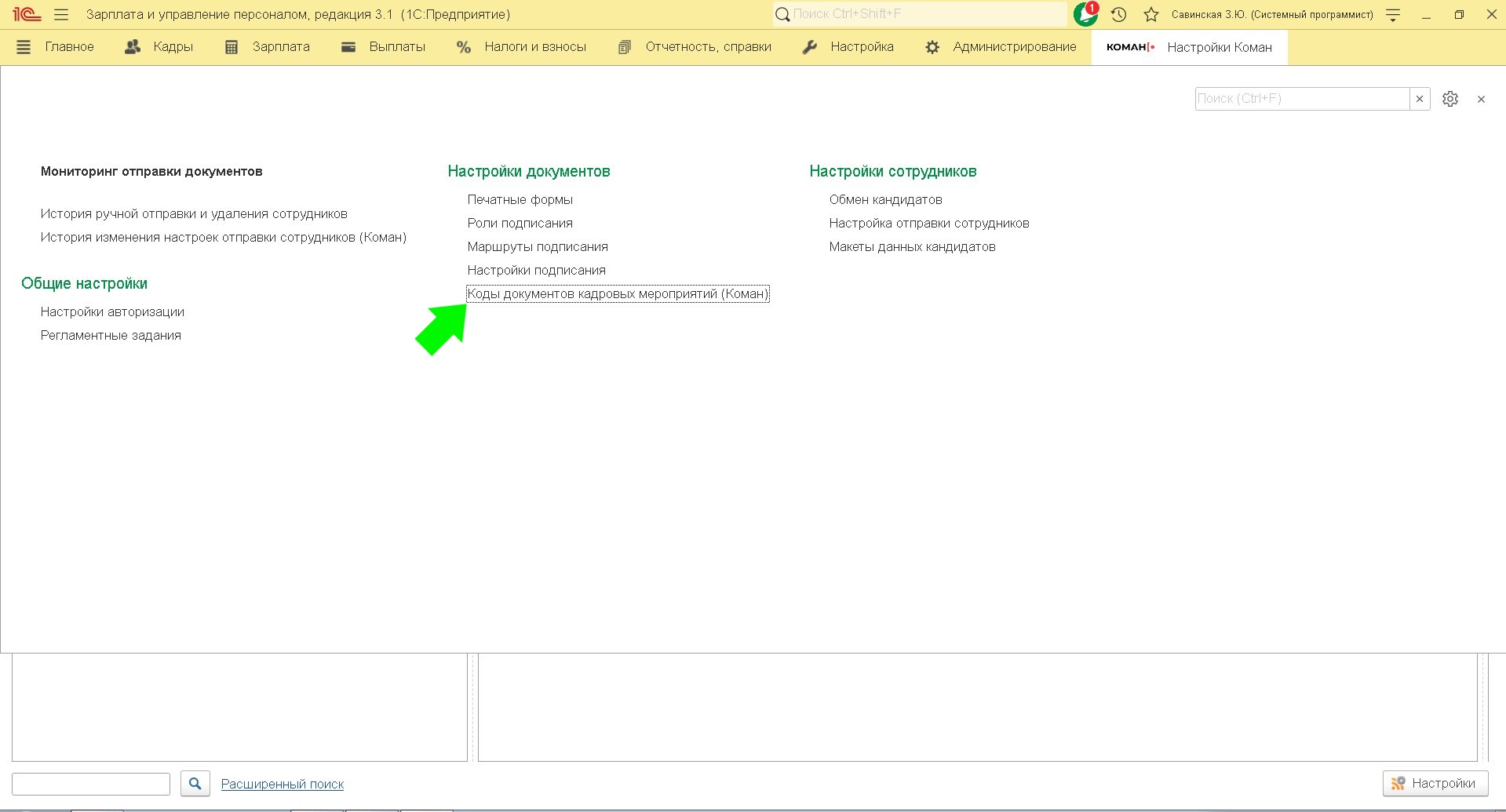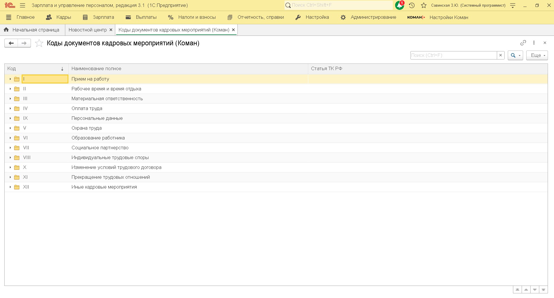 Коды документов кадровых мероприятий
