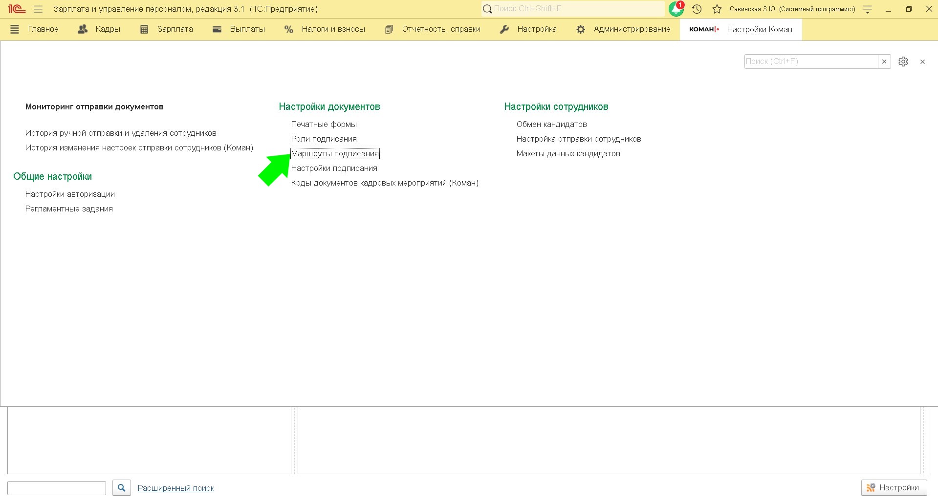 Зайдите в настройки Коман и выберете "Маршруты подписания" .