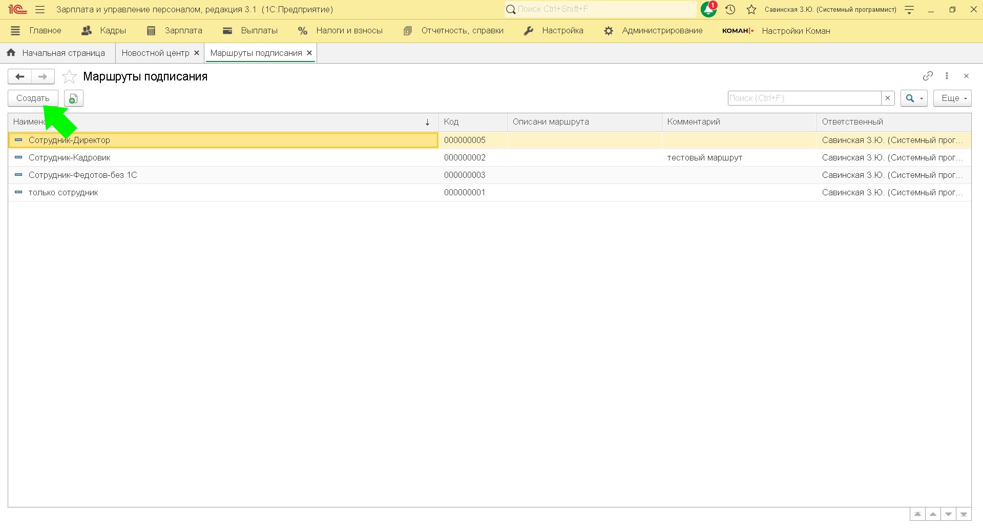 Создание маршрута подписания
