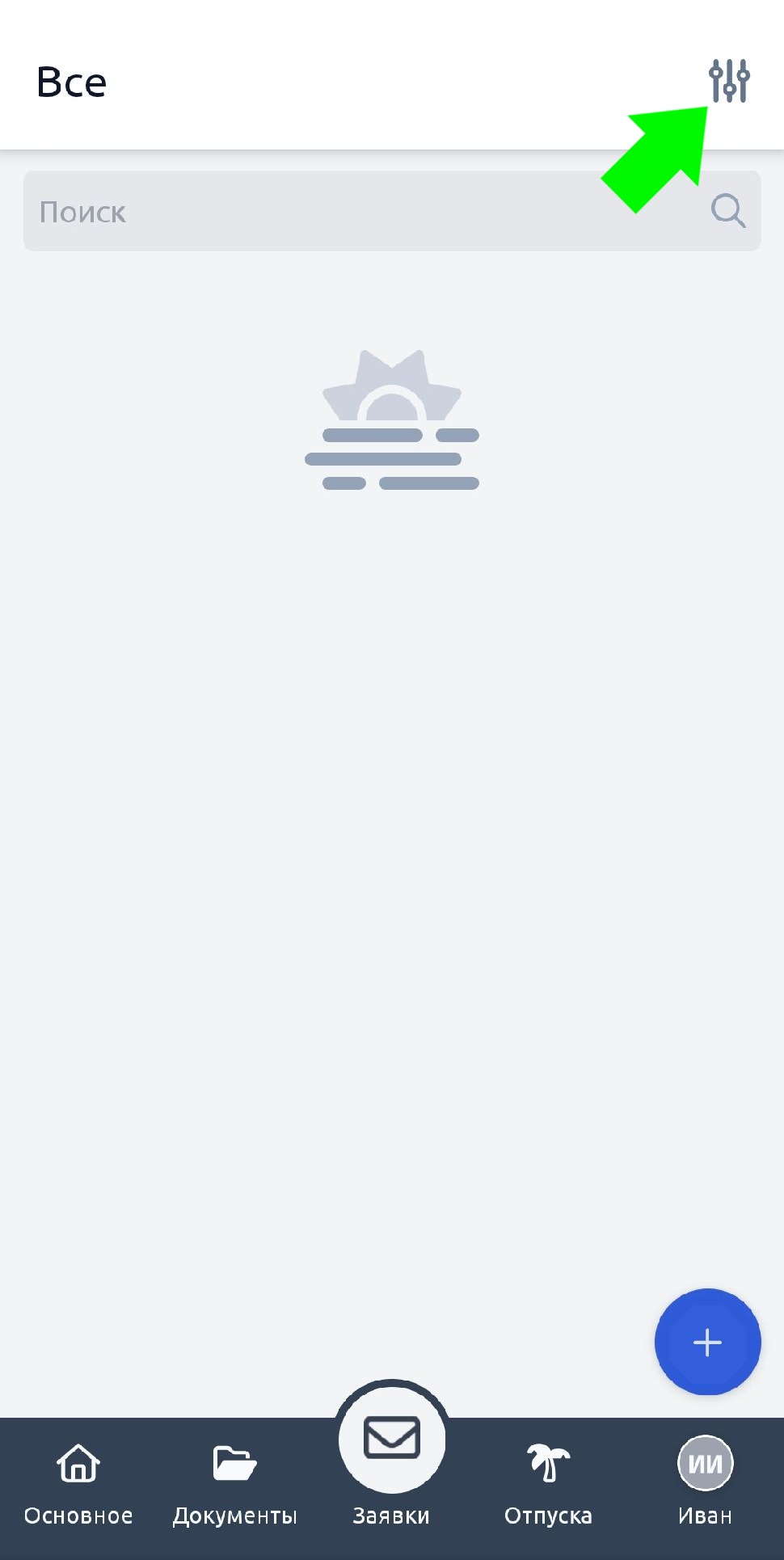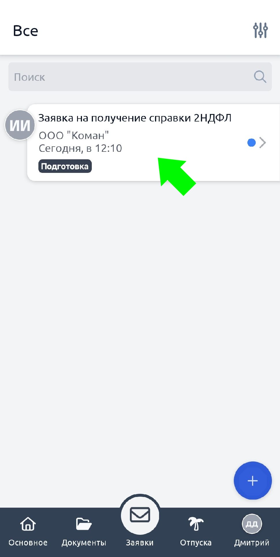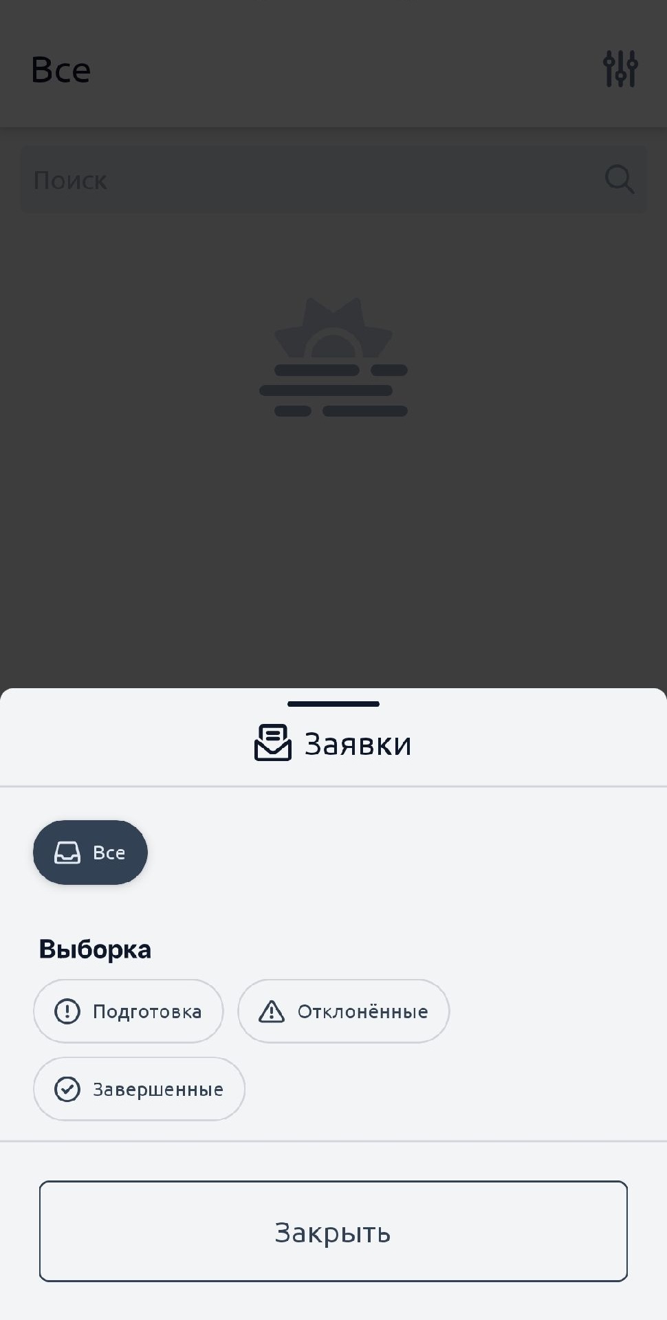 На экране предусмотрена возможность выбора прдеставлений с заявками.