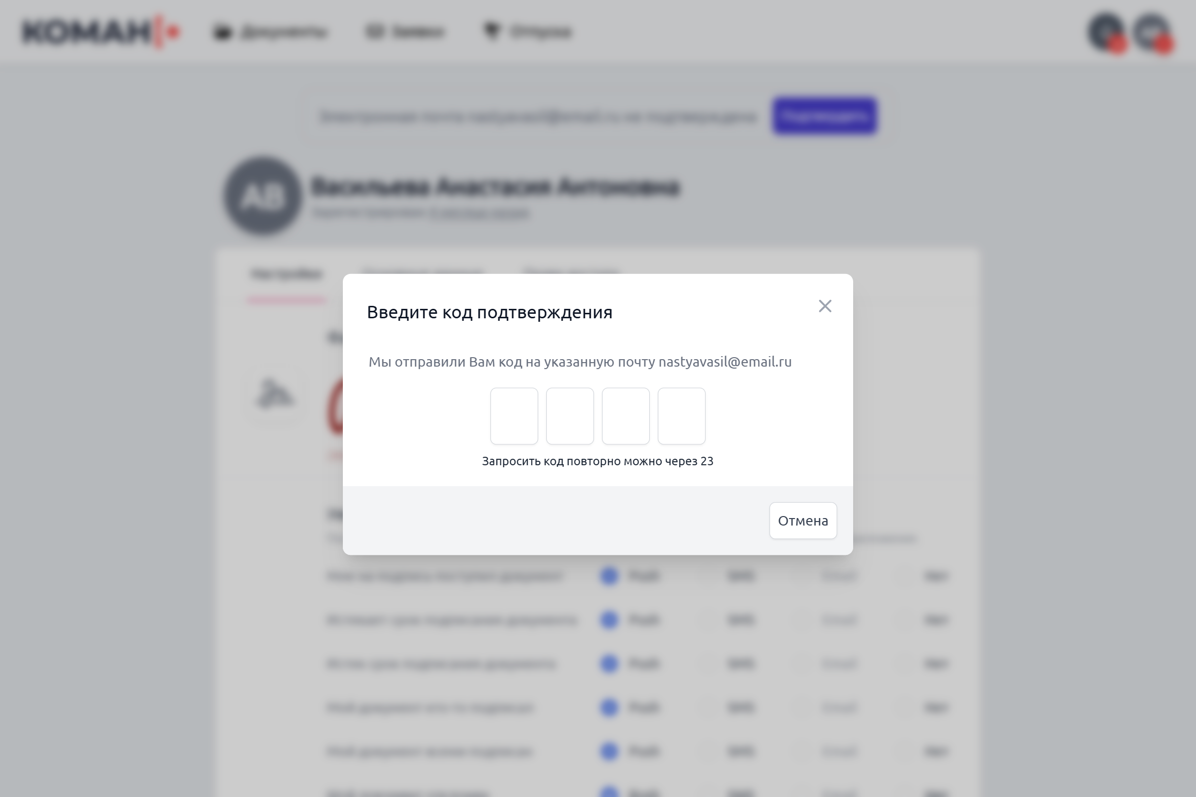 Нажмите на кнопку "Подтвердить". В окне подтверждения введите код, полученный на указанный канал.