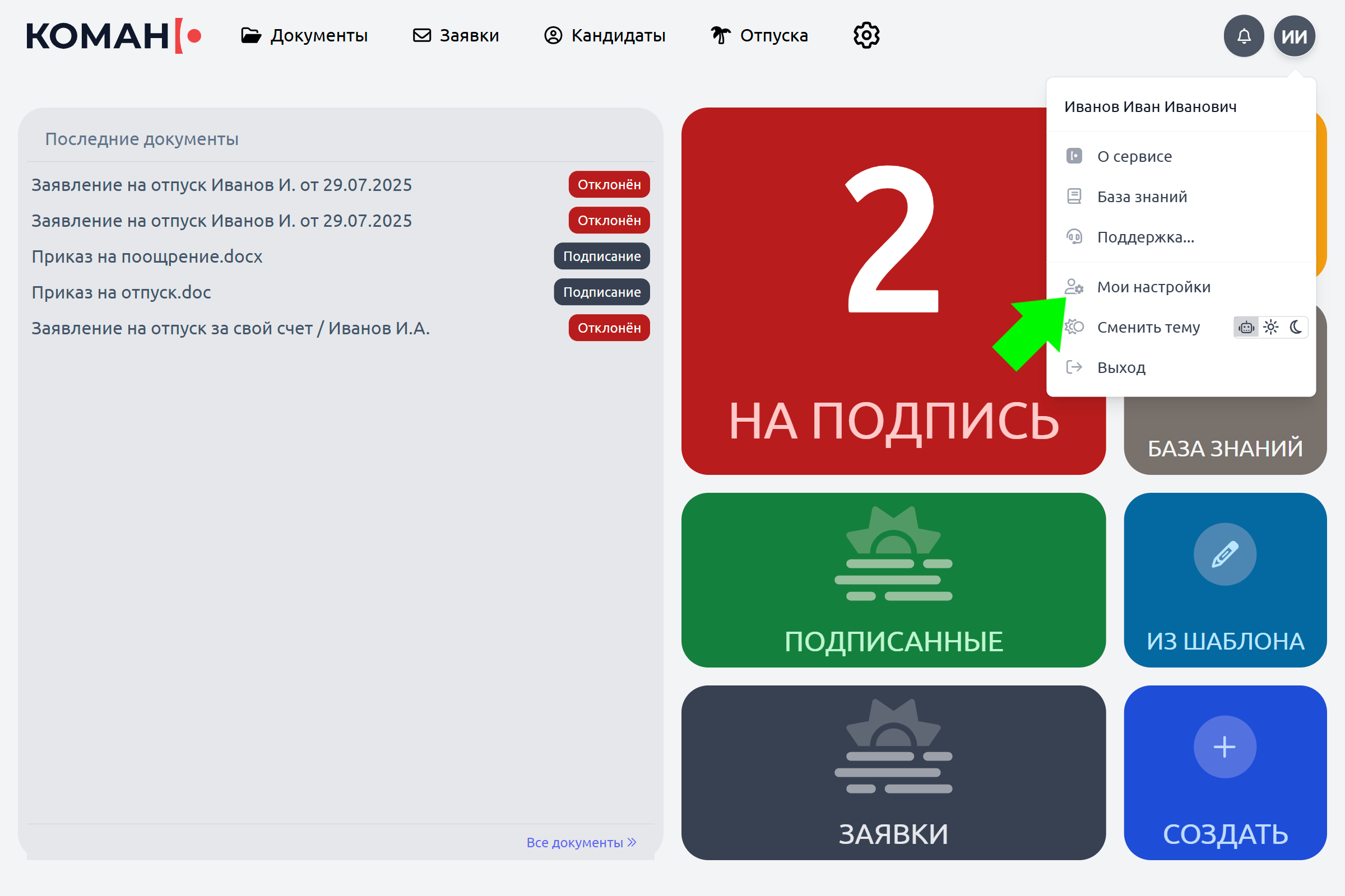 Нажмите значок пользователя, выберите «Мои настройки».