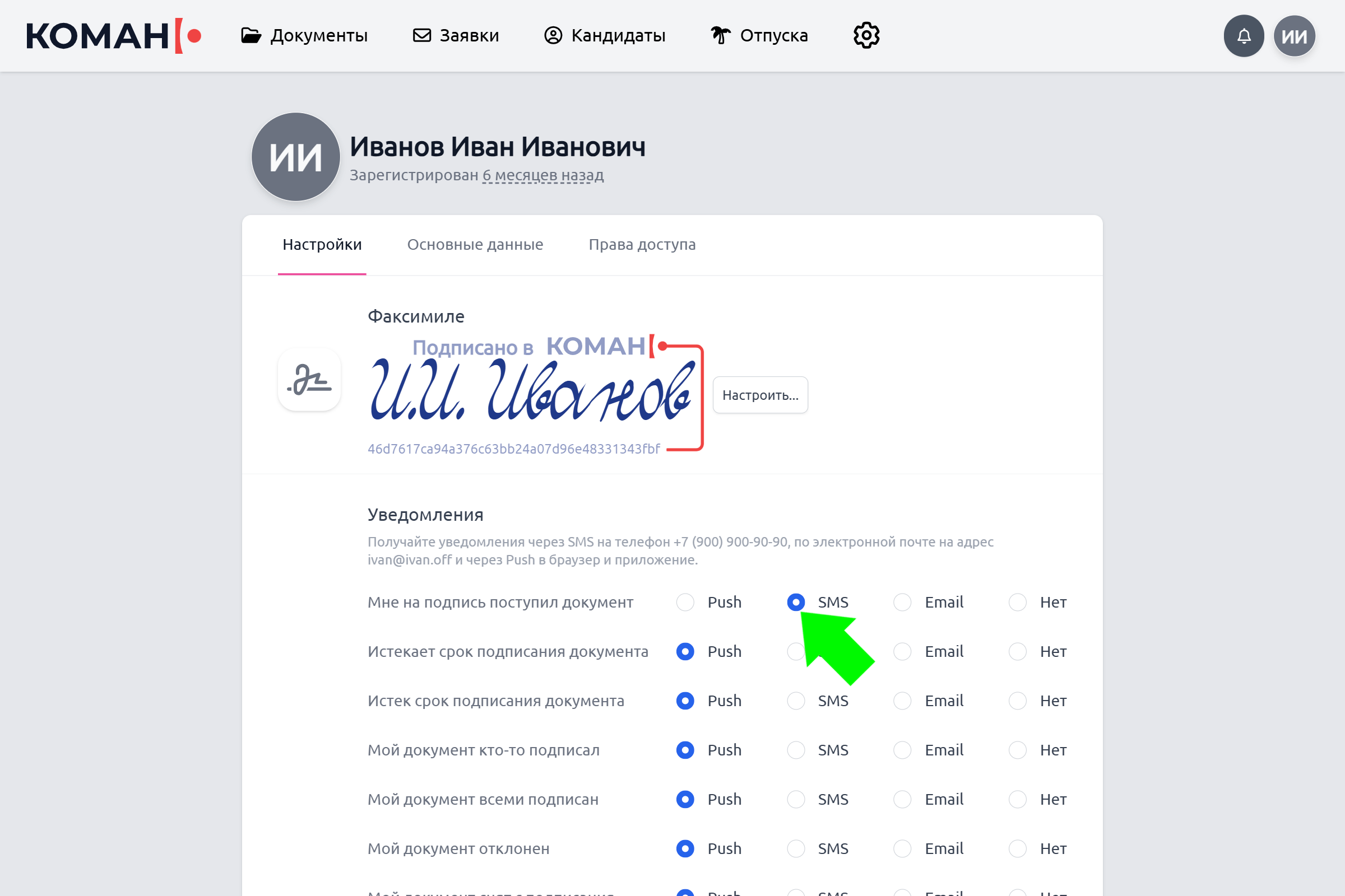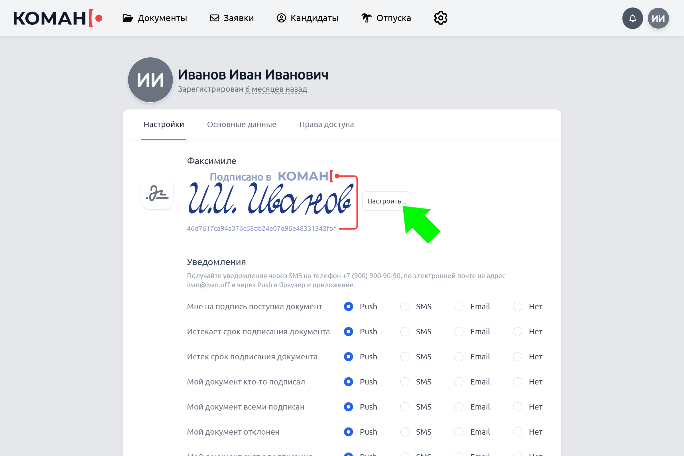 Настройте Факсимиле